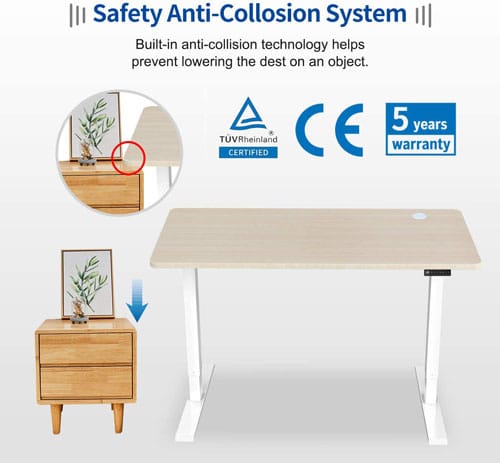 - Función anti-colisión supersensible, que evita que la mesa choque contra cualquier objeto mientras está subiendo o bajando en altura.